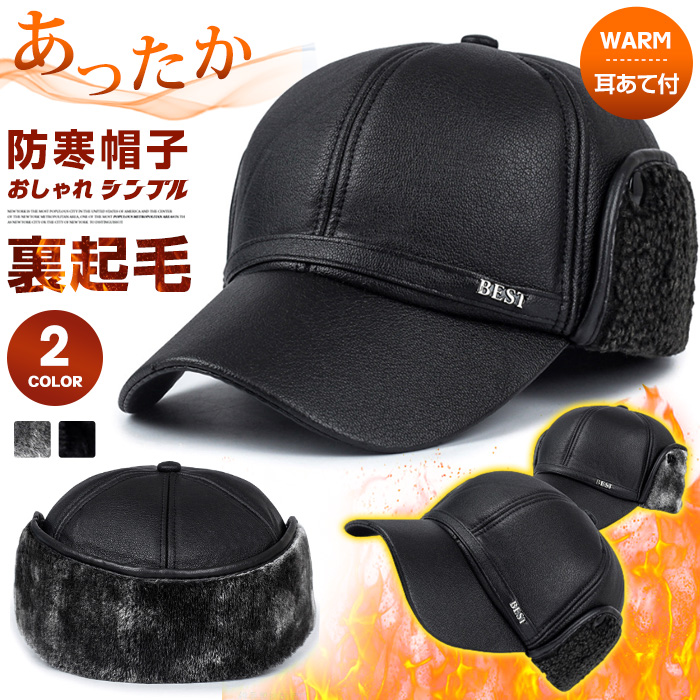 防寒帽子 耳あて付 ワークキャップ ハット キャップ メンズ PU帽 ゴルフ 秋冬 あったかバッグ 小物 ブランド雑貨 帽子 メンズ帽子 キャップ