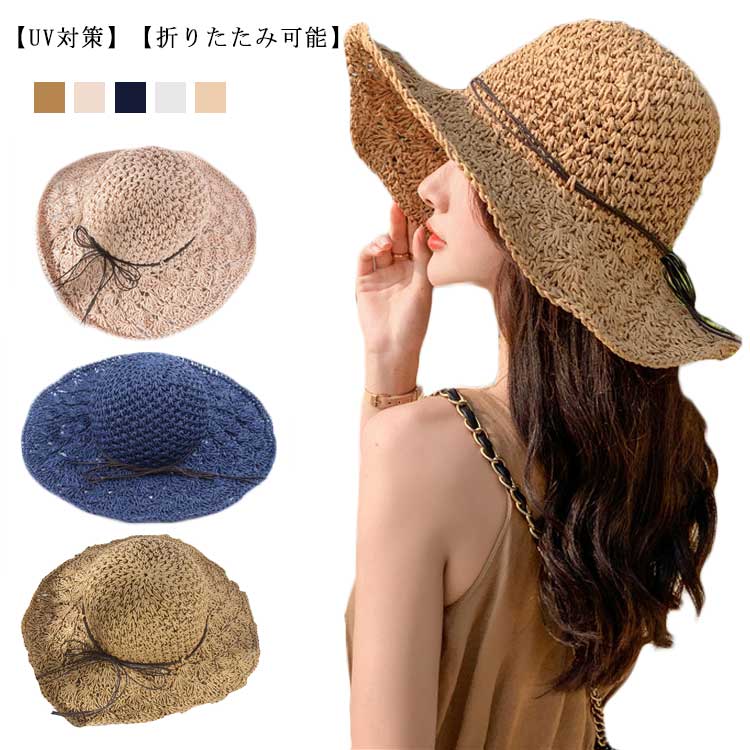 ペーパーハット ストローハット 麦わら帽子 レディース つば広帽子 海 春 水着コーデ 農作業 UVカット 折りたたみ つば広 夏 母の日 UV ビーチ