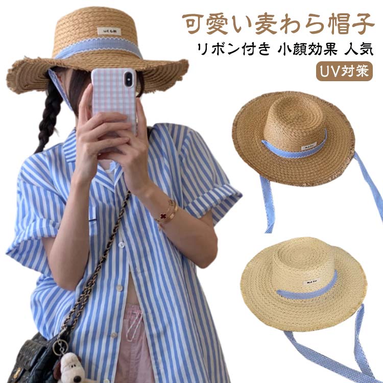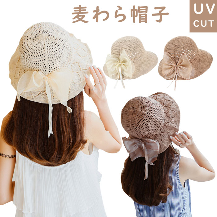 ハット リボン UVカット 麦わらハット 夏 夏用 大きサイズバッグ 小物 ブランド雑貨 帽子 レディース帽子 麦わら帽子
