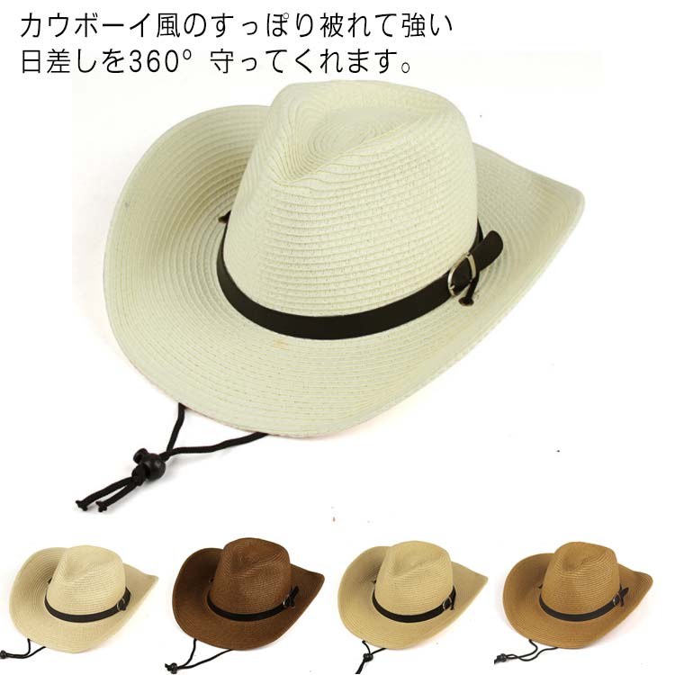 紫外線対策 メンズ レディース 日除け カウボーイハット ストロー つば広 ストローハット バッグ 小物 ブランド雑貨 帽子 メンズ帽子 麦わら帽子
