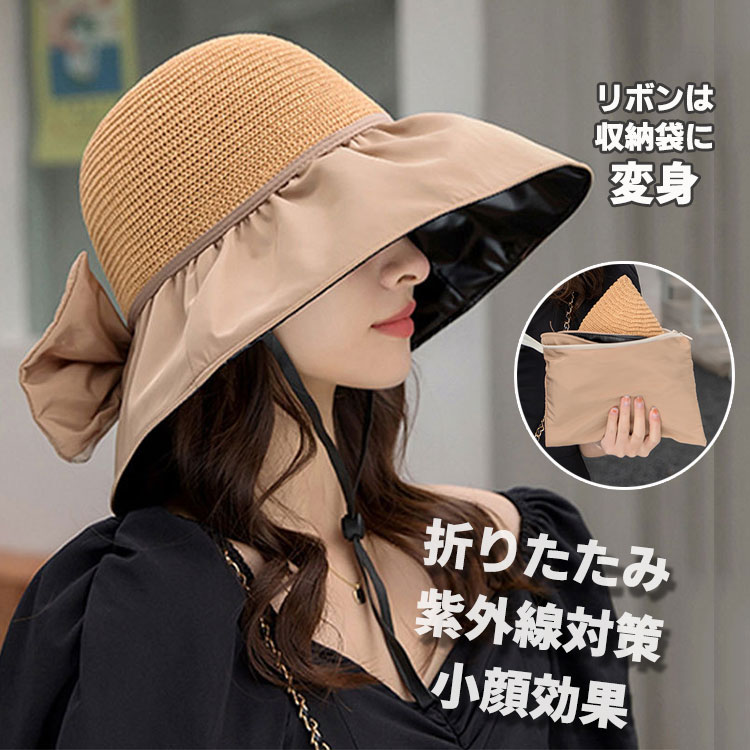 折りたたみ ストローハット 結んだまま 持ち運びらくらく 軽量ハット UVカットバッグ 小物 ブランド雑貨 帽子 レディース帽子 麦わら帽子