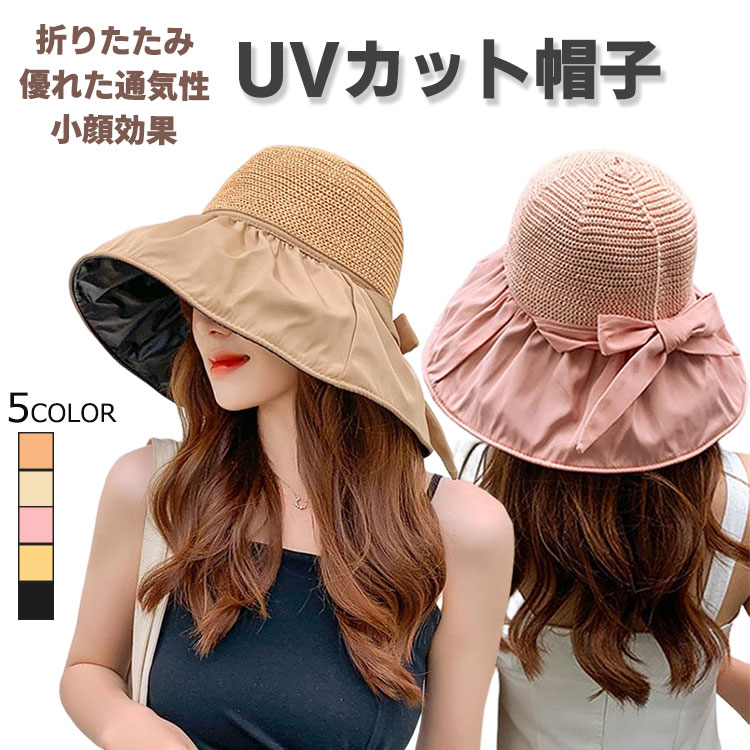 帽子 つば広ハット ガーデニング帽子 日よけ帽子 レディース カット ホコリよけ サンバイザー 紫外線対策 無地 リボン 遮光 通気性 防護帽 折畳み可 農作業