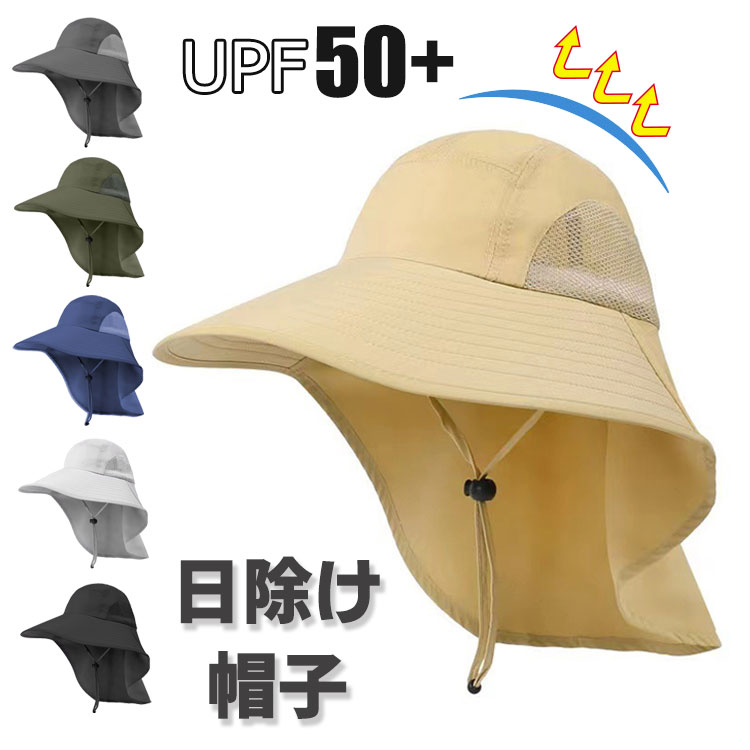 帽子 男女兼用 サファリハット 釣り帽子 熱中症対策 UVカット つば広 つば長 サンバイザー フェイスカバー ガーデニング用 農作業帽子