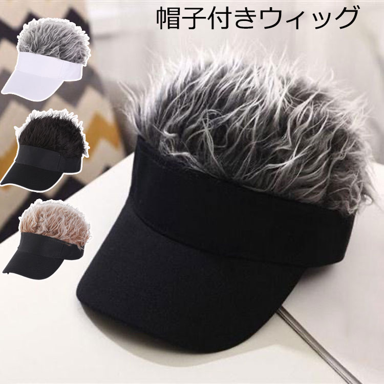 サンバイザー 帽子 ウィッグ メンズ ヘア フレアー ヘアーバイザー かつら ウイッグ 髪 ヘアサンバイザー