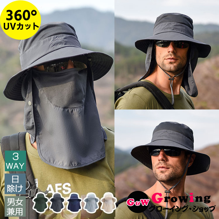 紫外線対策 帽子 サファリハット 釣り帽子 熱中症を予防 サンバイザー フェイスカバー ガーデニング用 農作業帽子 メンズ レディース