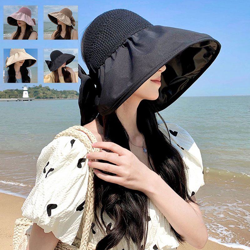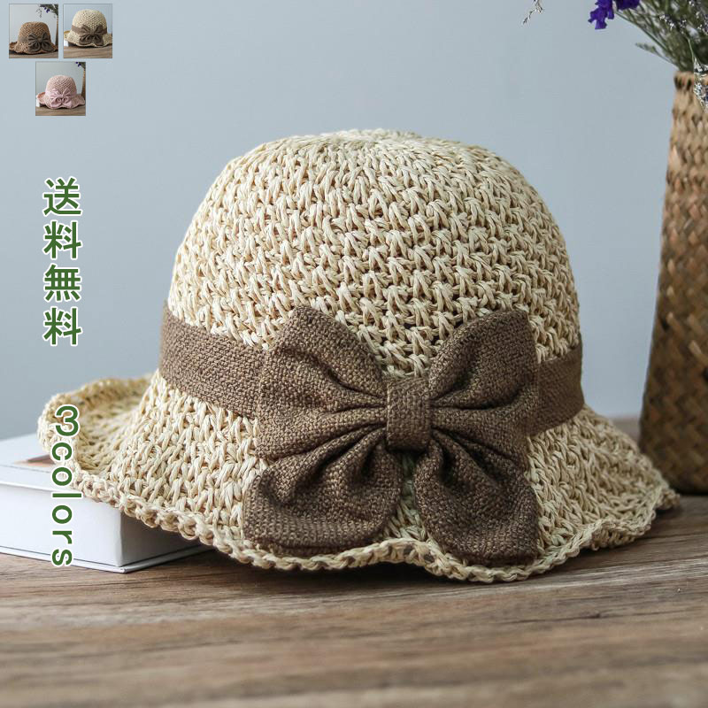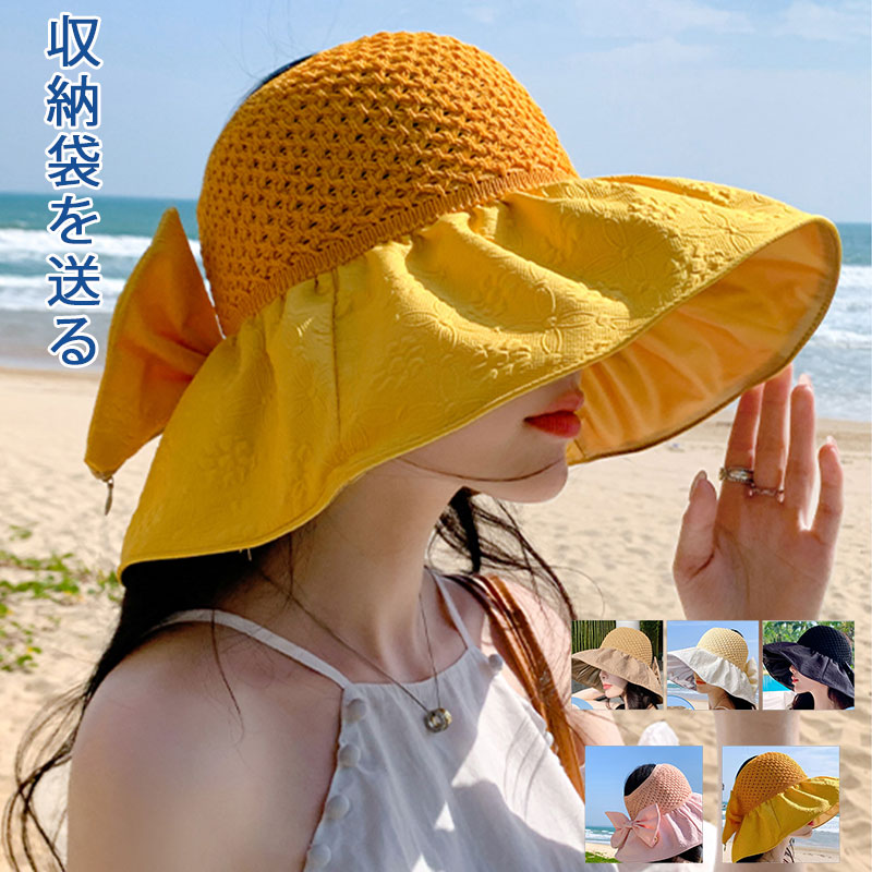 麦わら つば広 ペーパーハット 日焼け対策 UV 蝶結び リボン ハット 折りたたみ プレゼント エレガント 母 お出かけ 海 ビーチ 水着コーデ 紫外線 日よけ帽