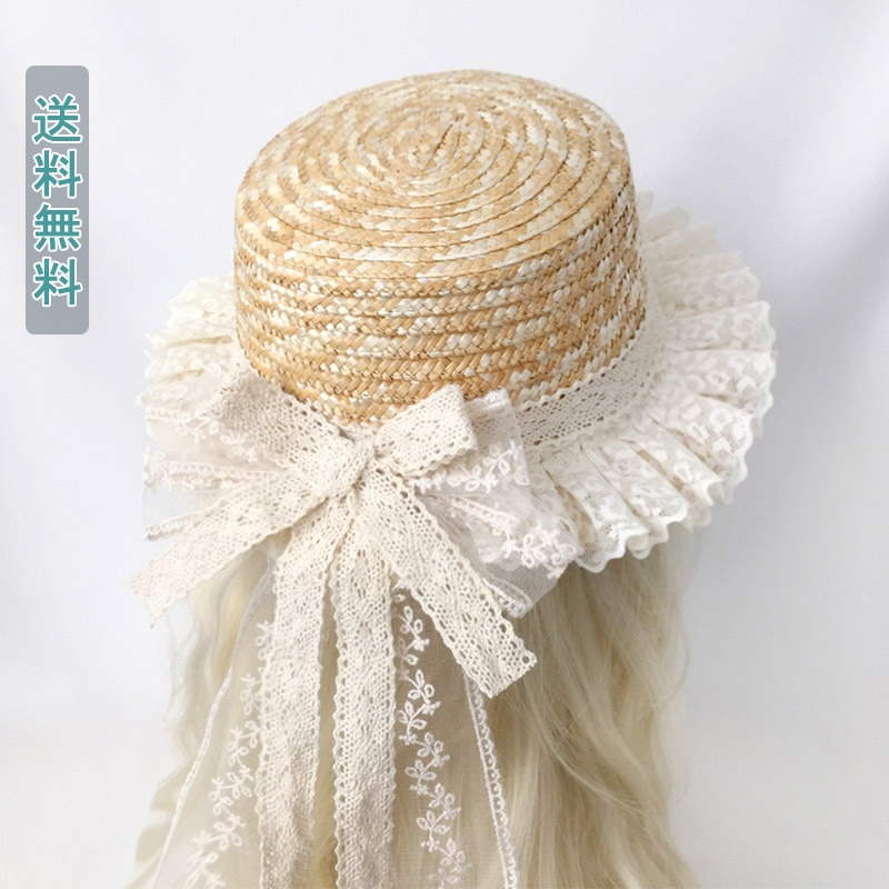 麦わら帽子 レディース 帽子 ハット 麦わらハット レディースキャップ リボン レース フリル ロリータ つば広 小顔効果 紫外線 日よけ 夏 大きめ 遮光 ファッション カジュアル おしゃれ かわい