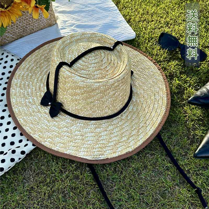 麦わら帽子 レディース 帽子 ハット 麦わらハット レディースキャップ あご紐 蝶結び つば広 小顔効果 紫外線 日よけ 夏 大きめ 遮光 ファッション カジュアル おしゃれ かわいい カット 通