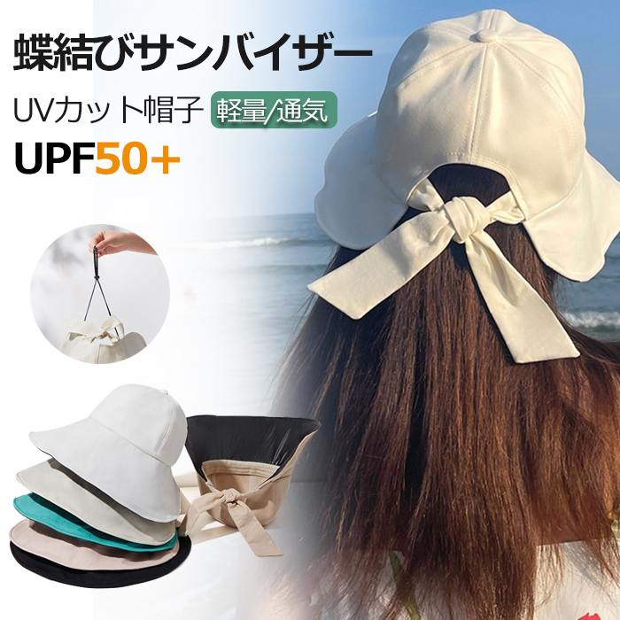 かわいくおしゃれに紫外線対策 UVカット サンバイザー バックリボン サイドウイング付バッグ 小物 ブランド雑貨 帽子 レディース帽子 サンバイザー