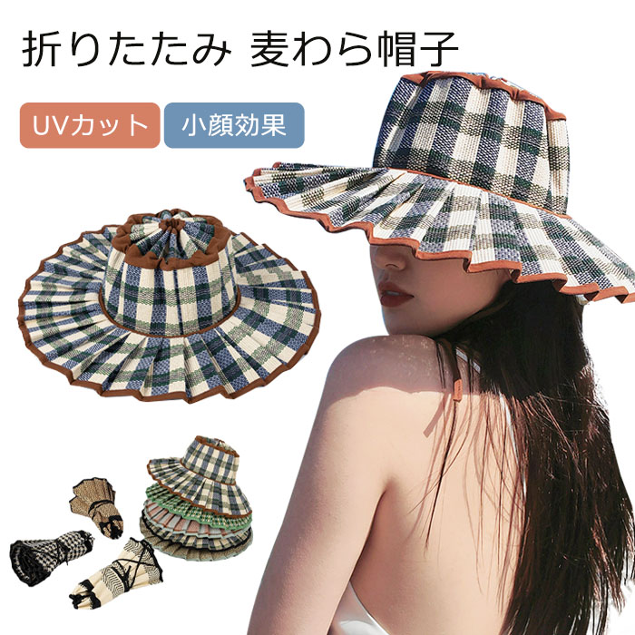 帽子 レディースハット 幾何学柄 UVカット 折りたたみ 麦わら帽子 つば広 ストローハット 夏 春 遮光遮熱 小顔効果 ストローハット あご紐 小さいサイズ キッズサイズ 子供 大人 ハット 麦わら
