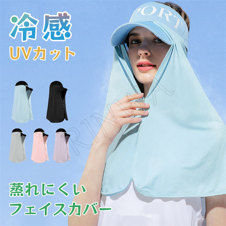 フェイスカバー 帽子 サンバイザー uvカット 紫外線対策 冷感 UPF50+ ロング 夏 真夏 メッシュ 蒸れにくい ひんやり 快適 取り付け 付け外し 洗える
