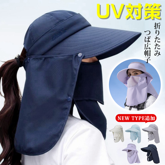 つば広帽子 農作業 レディース UVカット NEW TYPE追加 折りたたみ ホコリよけ ガーデニング帽子 着脱可能 紫外線対策 日よけ帽子 遮光 通気性 防護帽 自転車 日よけ帽子 敬老の日 花粉症
