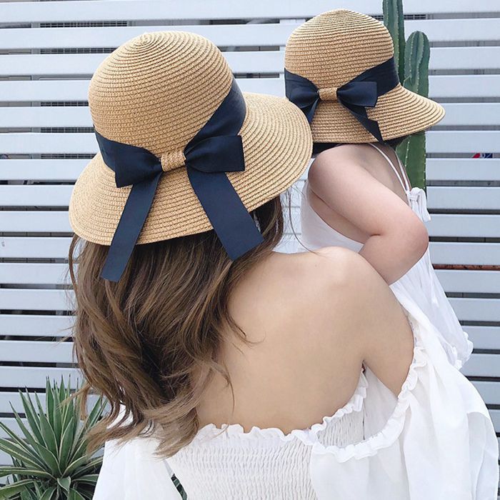 麦わら帽子 ハット 帽子 親子 レディース 子供 キッズ 夏 麦わら つば広 ペーパーハット 日焼け対策 UV 蝶結び リボン 折りたたみ プレゼント エレガント 母 お出かけ