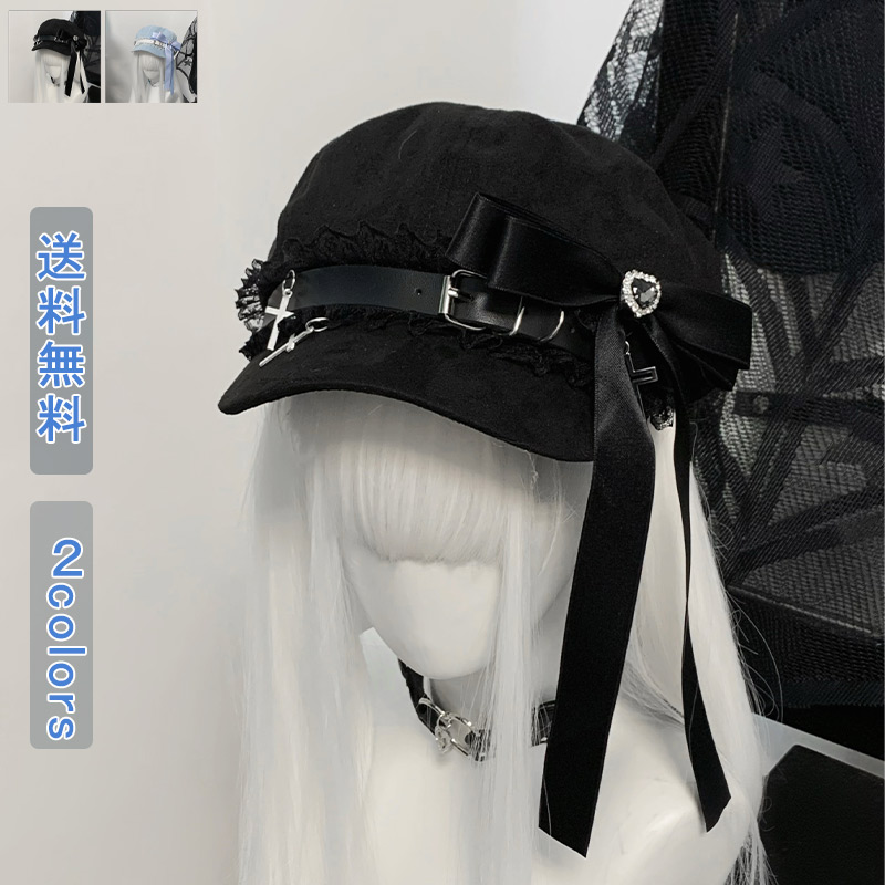 帽子 キャスケット レディース おしゃれ かわいい ロリータ ゴスロリ 地雷系 原宿系 リボン フリル クロスチャーム 派手カワ ファッション カジュアル 個性的 病み 病みかわいい ダンス 衣装 ダ
