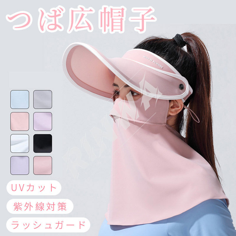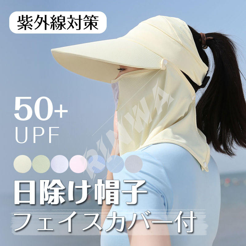 つば広帽子 フェイスカバー付き 2way フェイスカバー取外し可 旅行 プレゼント UVカットハット 日焼け防止 紫外線対策用 サンバイザー