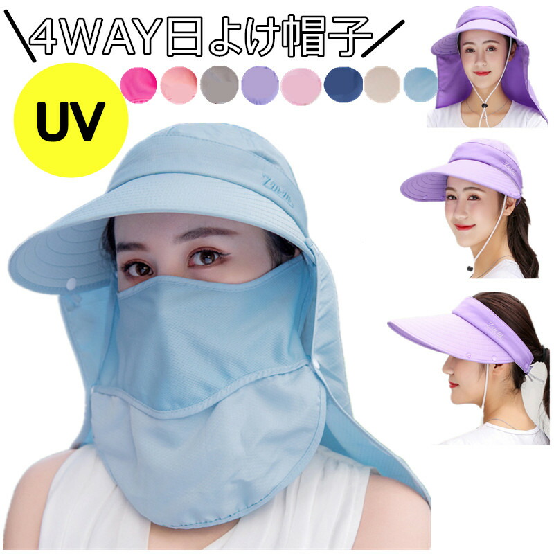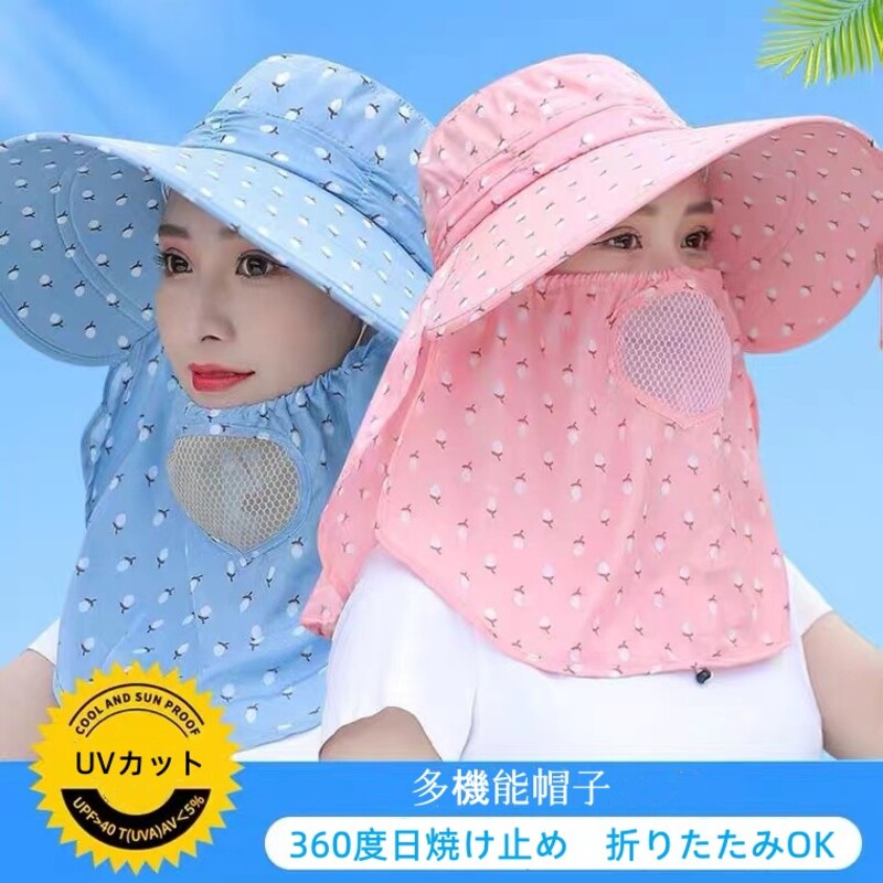 日よけ帽子 ガーデニング 帽子 UVカット つば広 農作業 紫外線対策 フェイスカバー スポーツ レディース 折りたたみ ネックカバー サンバイザー アウトドア