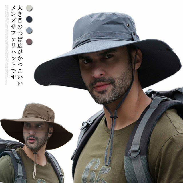 サファリハット メンズ つば広 釣り帽子 UVカット ストラップ付きバッグ 小物 ブランド雑貨 帽子 メンズ帽子 ハット