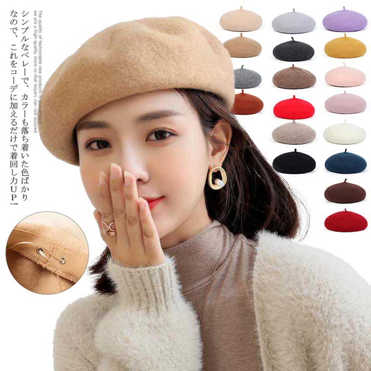 ベレー帽全18色 春夏 帽子 レディース おしゃれ 大きいサイズ 大きめ 無地 春 秋 冬 姉妹 オールシーズン 小物 ウール 毛 暖 フェルトシンプル レディースファッション 可愛い