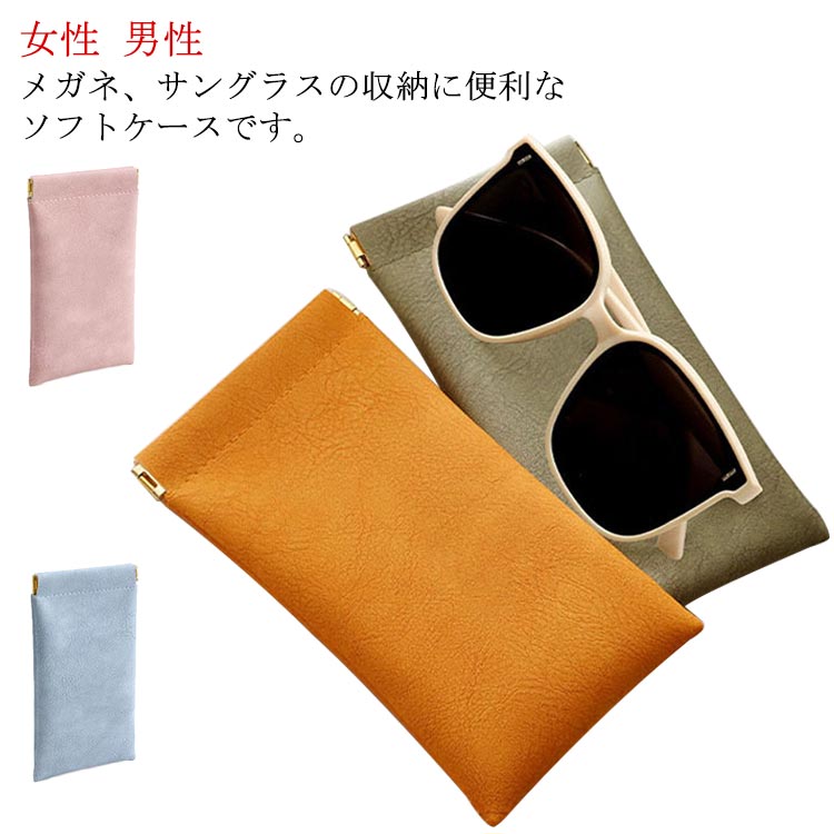 2個セット ワンタッチ開閉 おしゃれ レザー調 コンパクト 小物入れ 老眼鏡 サングラス 眼鏡ケース 革 携帯 便利 収納 スリム ソフト メンズ レディース サングラスケース メガネケース