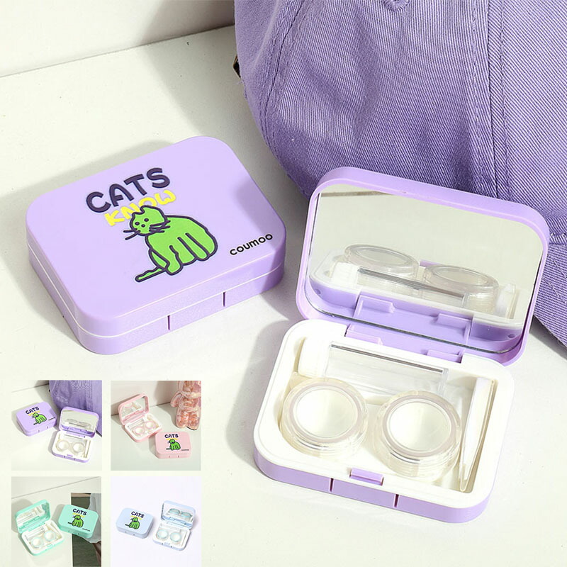 ソフト コンタクトケース かわいい 猫カラーコンタクト ミラー付 トラベル 旅行バッグ 小物 ブランド雑貨 眼鏡 サングラス 眼鏡小物 眼鏡ケース