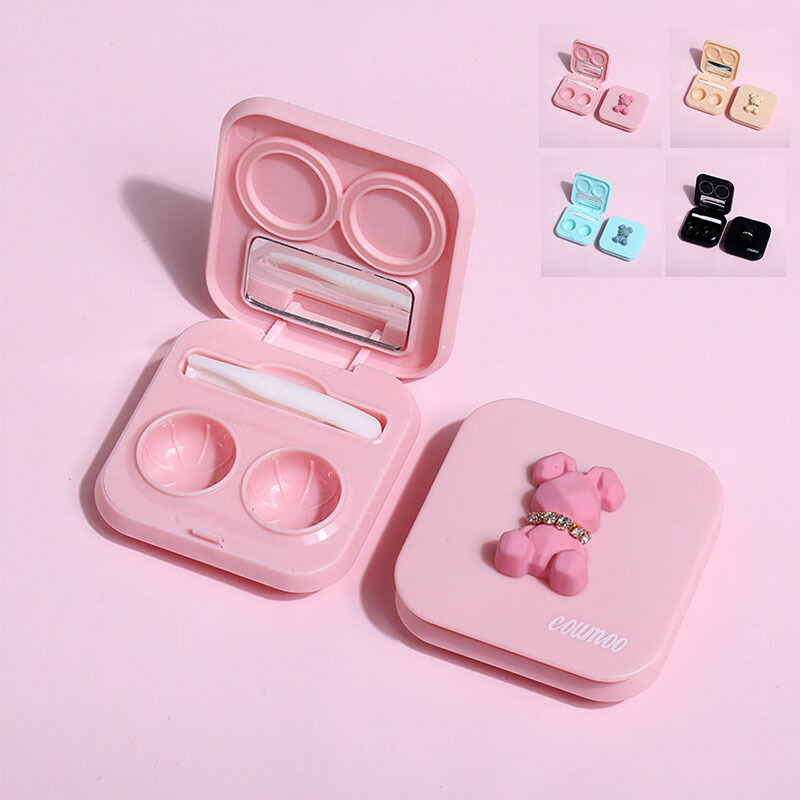 コンタクトケース プラスチック ミラー付 使いやすい ラインストーン熊 キラキラ カラコン コンタクト ソフト レンズケース