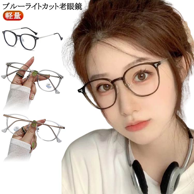老眼鏡 ブルーライトカット おしゃれ かわいい メンズ レディース 男性 女性 シンプル 軽い 頑丈 疲れない パソコン用 メガネ 度無し 1.0 1.5 2.0 2.5 3.0 3.5 4.0