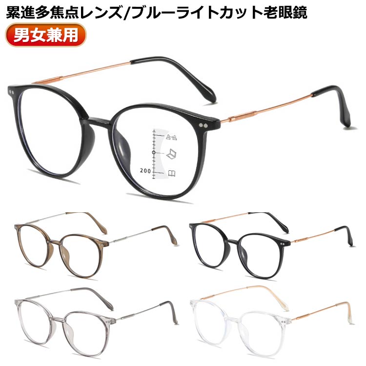 遠近両用メガネ レディース リーディンググラス メンズ 累進多焦点レンズ ギフト シニアグラス おしゃれ ブルーライトカット 眼鏡 軽量 メガネ 敬老の日 老眼鏡