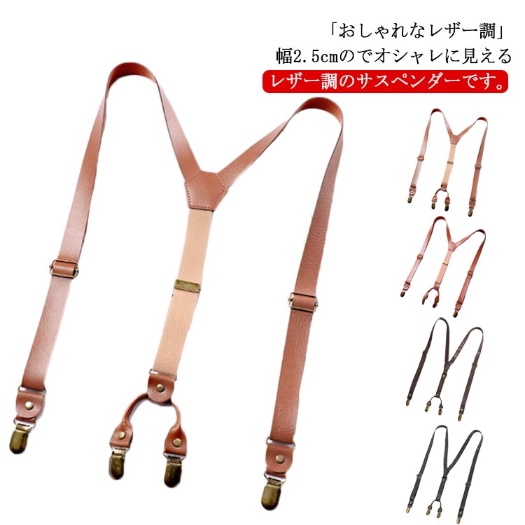 25 メンズ 型 サスペンダー 樹脂 クリップ フェイクレザー 調節可能 ライトブラウン, フォーマル(