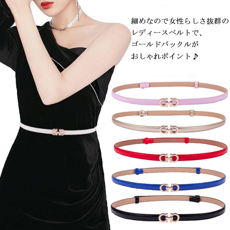 ベルト レディース ワンタッチ かわいい おしゃれ 細め 細見え ゴールド 楽ちん 高見え すっきり ウエスト調整 PUレザー 女性用 細ベルト カジュアル 華奢 スカート ワンピース スーツ