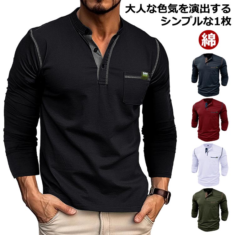 配色使いがおしゃれ 長袖 シャツ カットソー トレーナー ゴルフウェア ビジネス カジュアル 通勤 胸ポケット