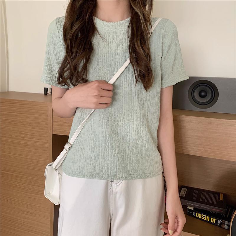 Tシャツ レディース 半袖 カジュアル きれいめ 凸凹 ジャガード しぼ 可愛い お洒落 ゆったり 着心地