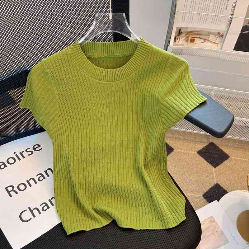 リブニット ラウンドネック フレンチスリーブ トップス レディース おすすめ おしゃれ 大きいサイズ 大人
