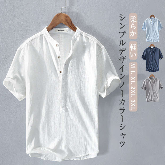 メンズカジュアル リネン風 半袖シャツ - 大きいサイズ ~3 プレゼント 贈り物 ギフト 父の日 父 ホワイト ブルー グレー ネイビー 白 青 灰色 ファッション お洒落 ♪