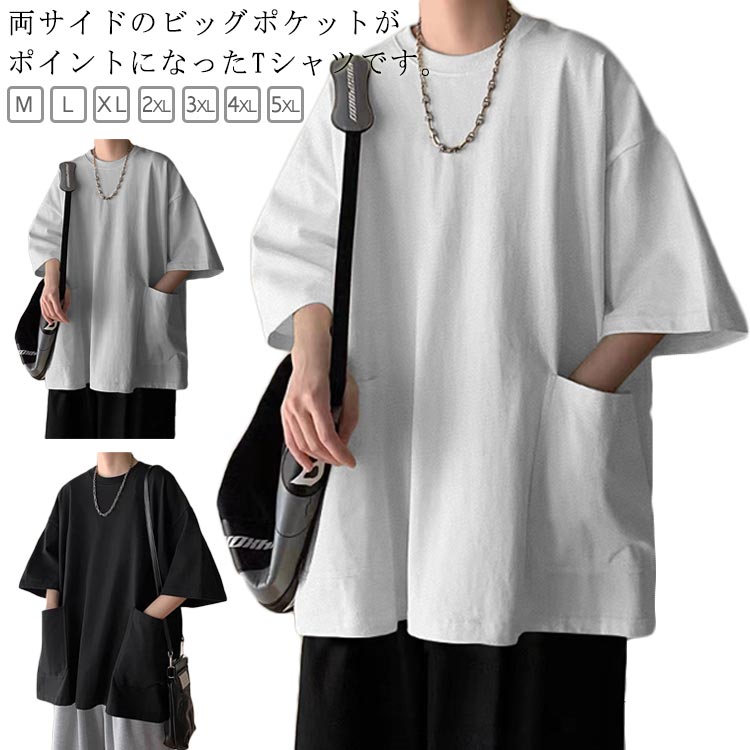 オーバーサイズ tシャツ 7分袖 丸首 ポケット カジュアル ストリート メンズファッションメンズファッション トップス Tシャツ カットソー