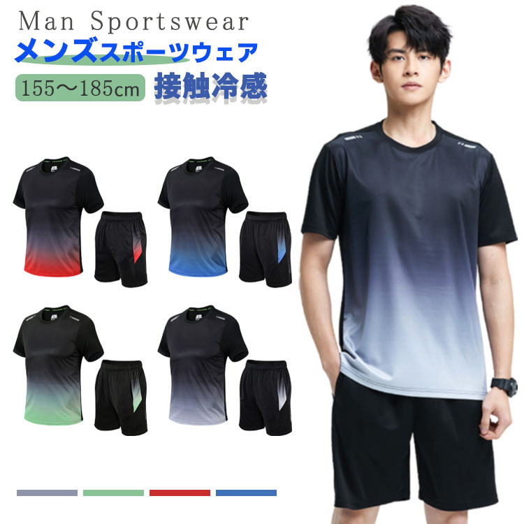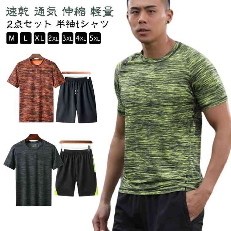 スポーツウェア メンズ トレーニングウェア 2点セット ジャージ 半袖tシャツ ショートパンツ 吸汗速乾 ランニングウェア ドライ生地 吸汗 速乾 通気 伸縮 軽量