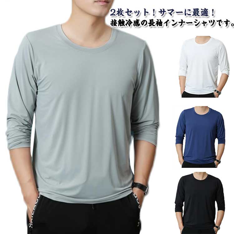 シャツ メンズ 冷感 インナー アイスシルク 夏 長袖 クルーネック 涼しい 接触冷感 クール感 ティーシャツ 長袖シャツ