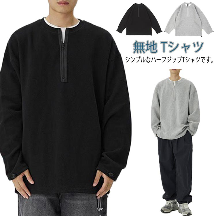 Tシャツ 無地 トレーナー カジュアル トップス 長袖 シンプル ハーフジップ トップス ロングTシャツ クルーネック 春秋 カットソー メンズ