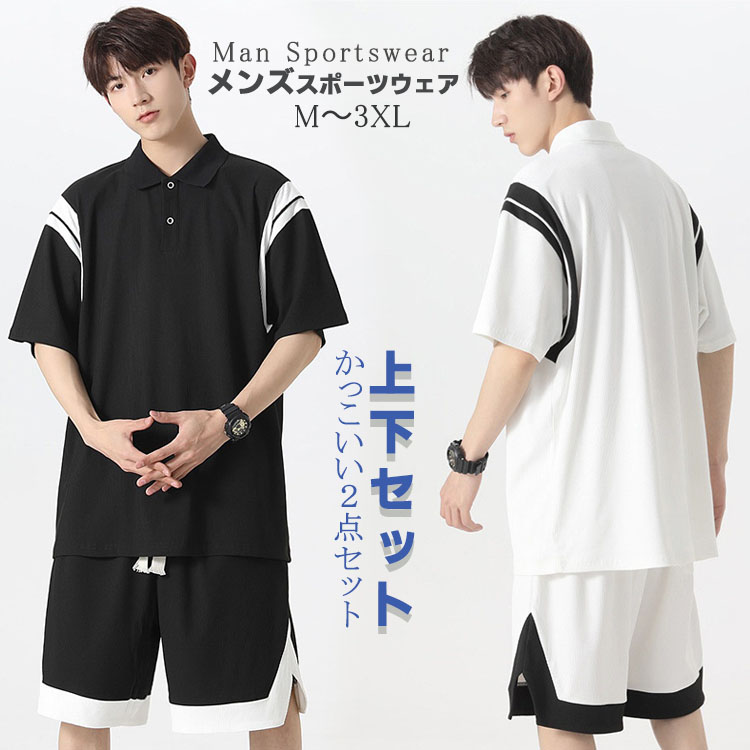 スポーツウェア メンズ トレーニングウェア 2点セット ジャージ 半袖シャツ ショートパンツ 吸汗速乾 ランニングウェア ドライ生地 吸汗 速乾 通気 伸縮 軽量