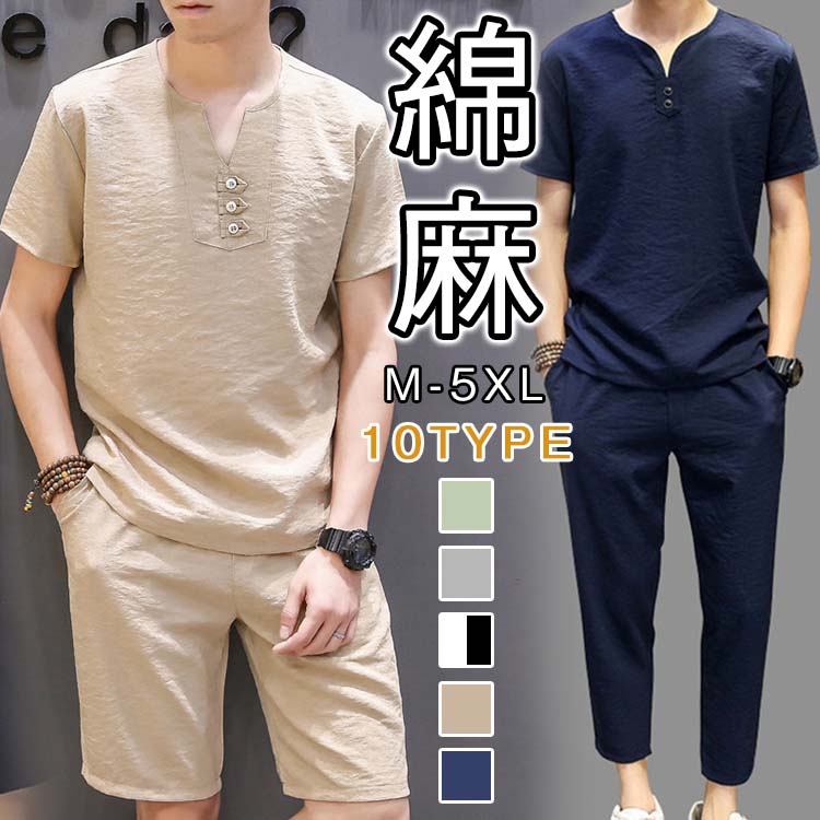 メンズ セットアップ 半袖 夏 上下セット 半袖Tシャツ&ショートパンツ 綿麻 リネン素材 ジャージ スウェット 大きいサイズ
