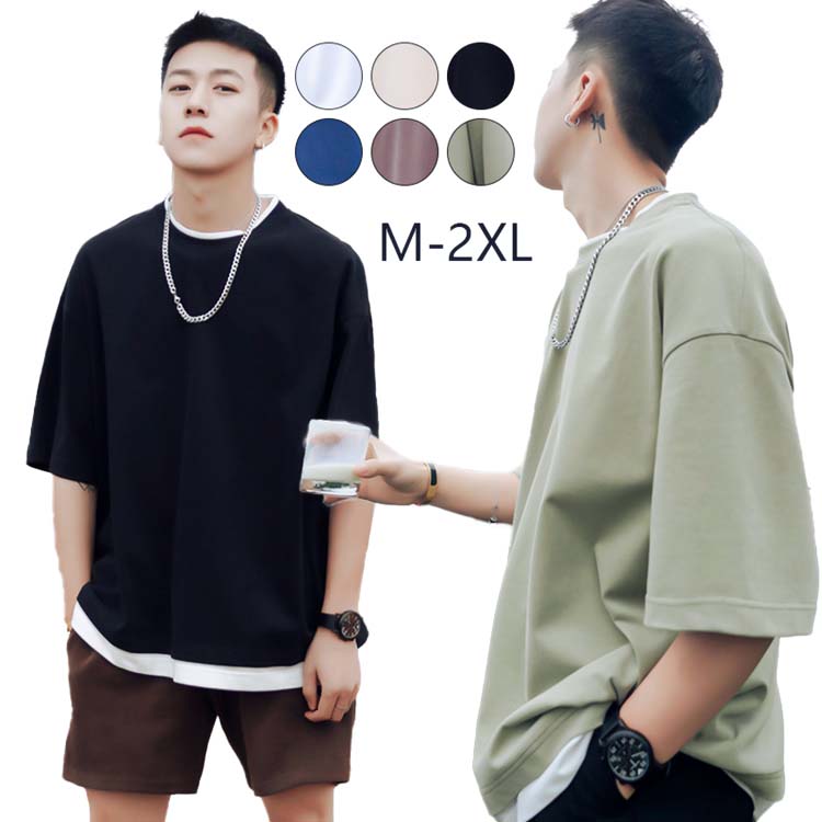 紳士 韓国コーデ tシャツ メンズ 男性 ギフト 運動会 韓国風 レイヤード風 カットソー 半袖 ヘビーウェイト 文化祭 ハイクオリティーTシャツ 無地 ダンス メンズ プリントスター
