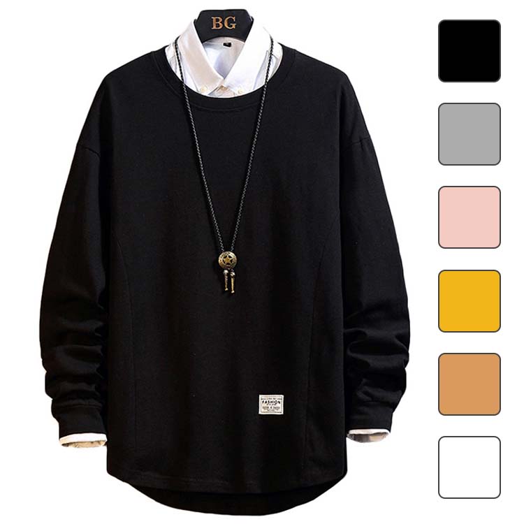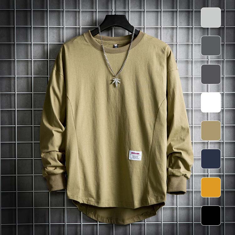 秋服 メンズシャツ 大きいサイズ メンズ 無地 クルーネック ゆったり ロングシャツ 長袖シャツ メンズ 無地 クルーネック ネック カットソー トップス