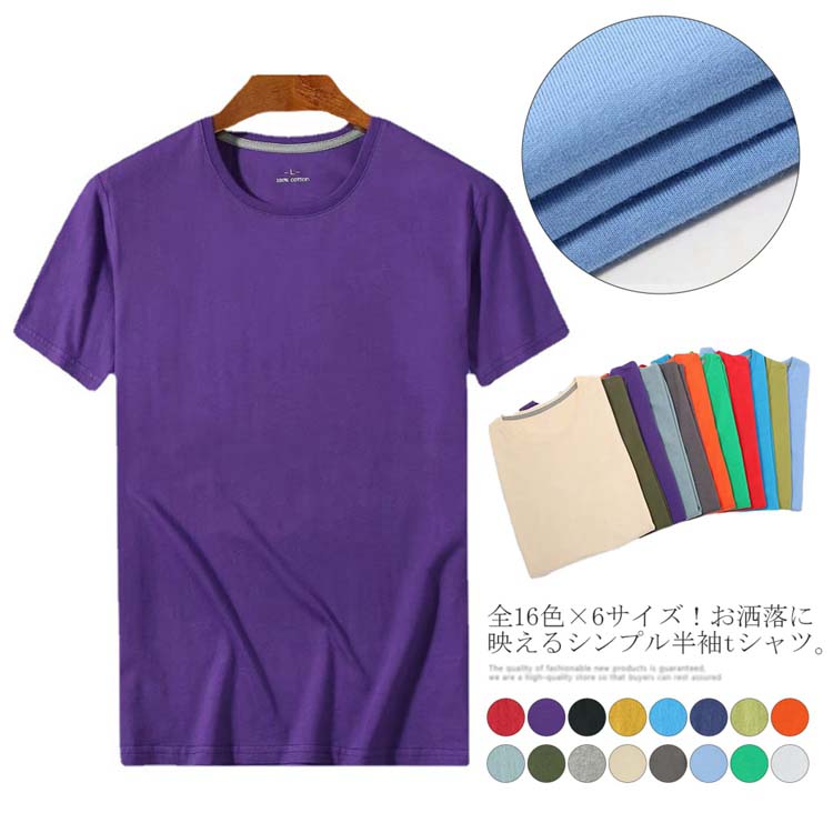 全16色×6サイズ tシャツ メンズ ラウンドネックtシャツ クルーネック 半袖tシャツ トップス ベーシック 無地tシャツ 大きサイズ メンズファッション 半袖 カットソー