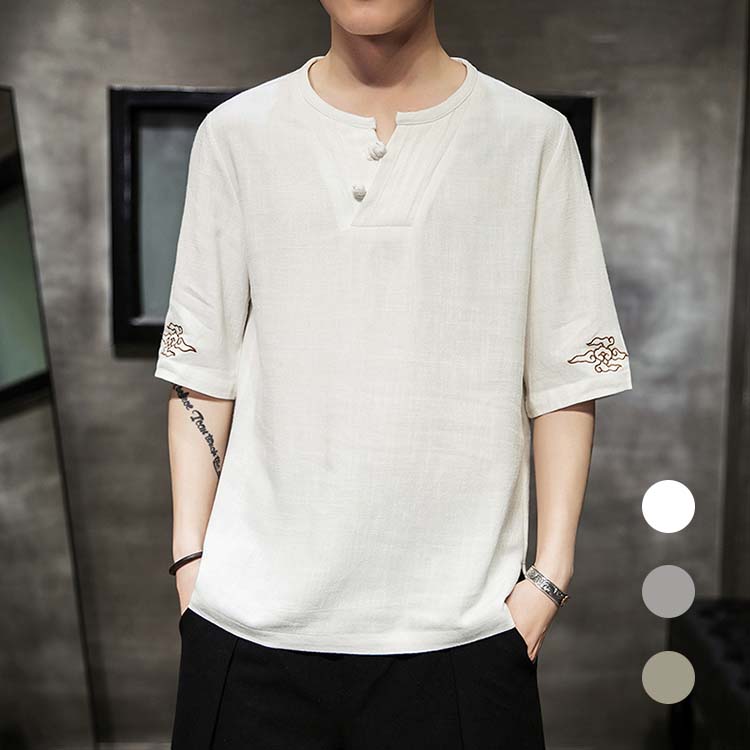 メンズ シャツ 冷感 半袖 夏 トップス 綿麻生地 リネン素材 通気 無地 薄手 ジャージ カジュアル スウェット 通気 涼しい