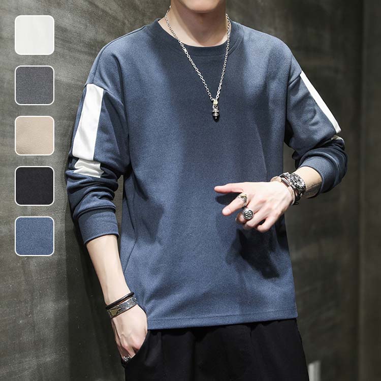 Tシャツ メンズ 秋服 長袖Tシャツ プルオーバーシャツ 長袖 ロンT ロングTシャツ メンズニット カットソー トップス トップス ロンT カットソー クルーネック