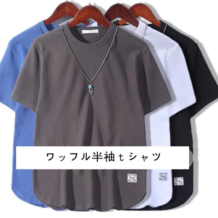 半袖シャツ ワッフル tシャツ クルーネック 韓国風 メンズ 速乾 トップス カットソー カジュアル 薄手 半袖 シャツ インナー お兄系 夏服 夏物 部屋着 父の日 プレゼント