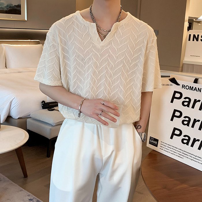 半袖シャツ tシャツ ネック 韓国風 メンズ 速乾 トップス カットソー カジュアル 薄手 半袖 シャツ インナー お兄系 夏服 夏物 部屋着 父の日 プレゼント