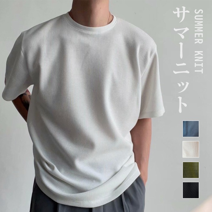 サマーニット メンズ クルーネック 半袖 ニット 無地 薄手 トップスメンズファッション トップス Tシャツ カットソー