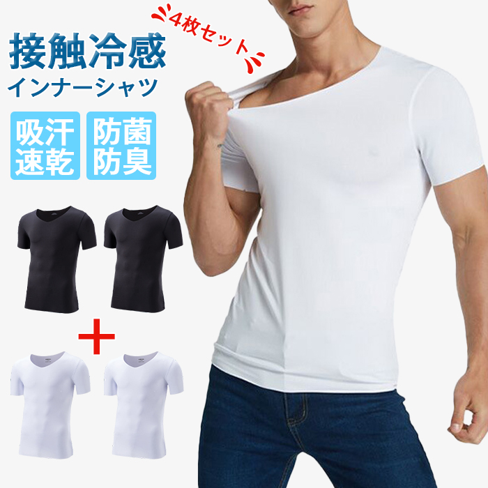 Tシャツ メンズ 半袖 インナーシャツ 4点セット 肌着 接触冷感 tシャツ vネック 無地 吸汗速乾 快適 防菌防臭 ドライ Tシャツ メンズ 服