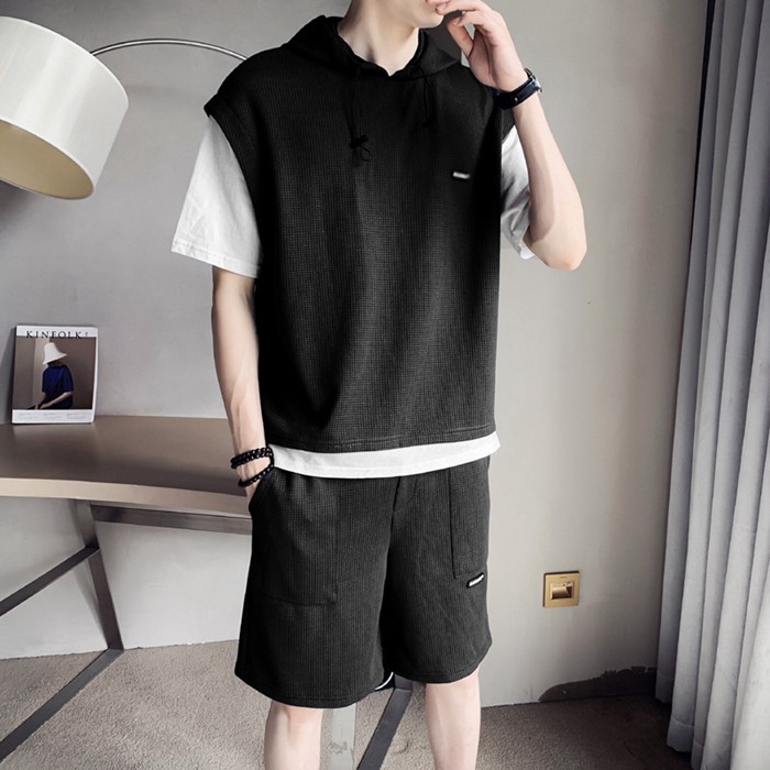 メンズ セットアップ 上下セット ワッフル 夏服 スウェット 半袖 シャツ ハーフパンツ スポーツウエア カジュアル 吸汗速乾 韓国ファッション メンズ