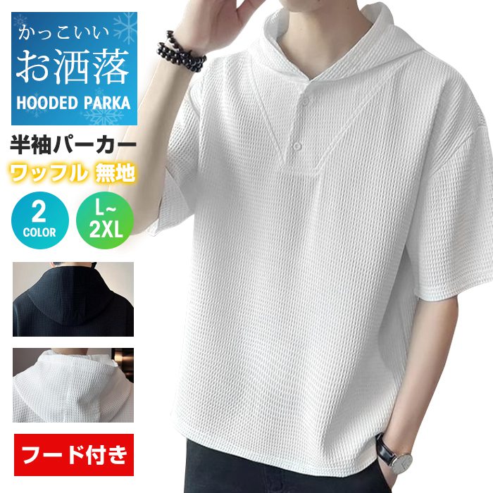 Tシャツ メンズ トップス 半袖パーカー フード付き ワッフル 夏 半袖 シンプル カジュアル おしゃれ かっこいい お洒落 夏物